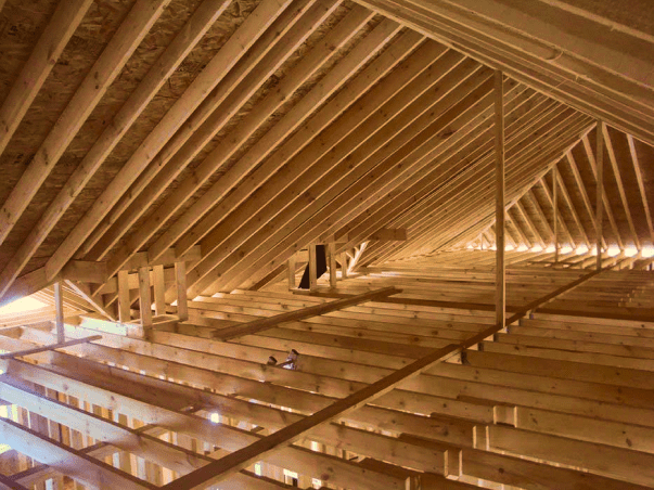 Произведена замена кровельного покрытия на мягкую черепицу с усилением стропильной системы