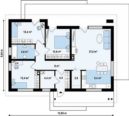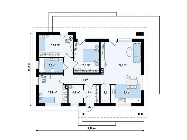 Общая площадь: 126 м2
