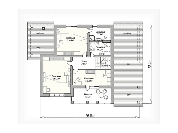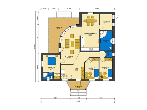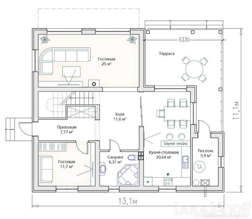 Общая площадь: 168 м2