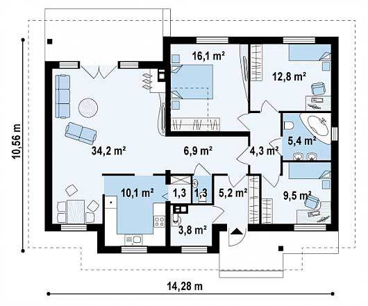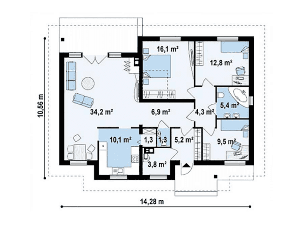 Общая площадь: 106 м2