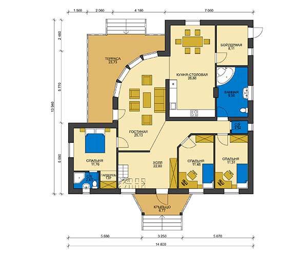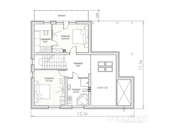 Общая площадь: 150 м2