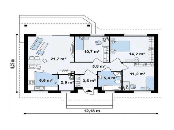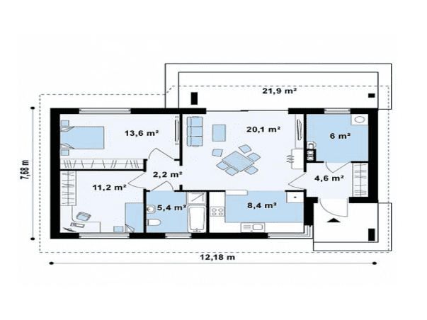 Общая площадь: 100 м2