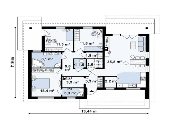 Общая площадь: 94 м2