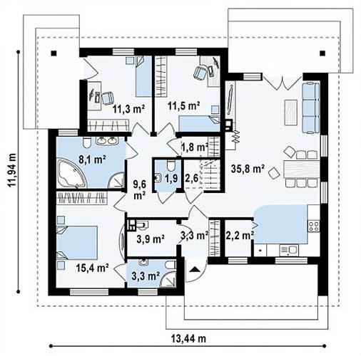 Общая площадь: 134 м2