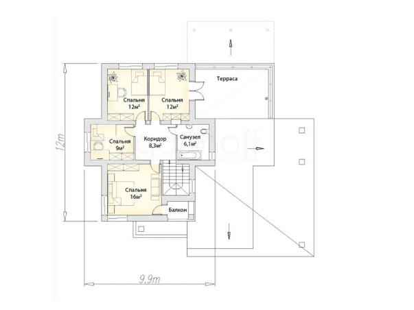Общая площадь: 92 м2